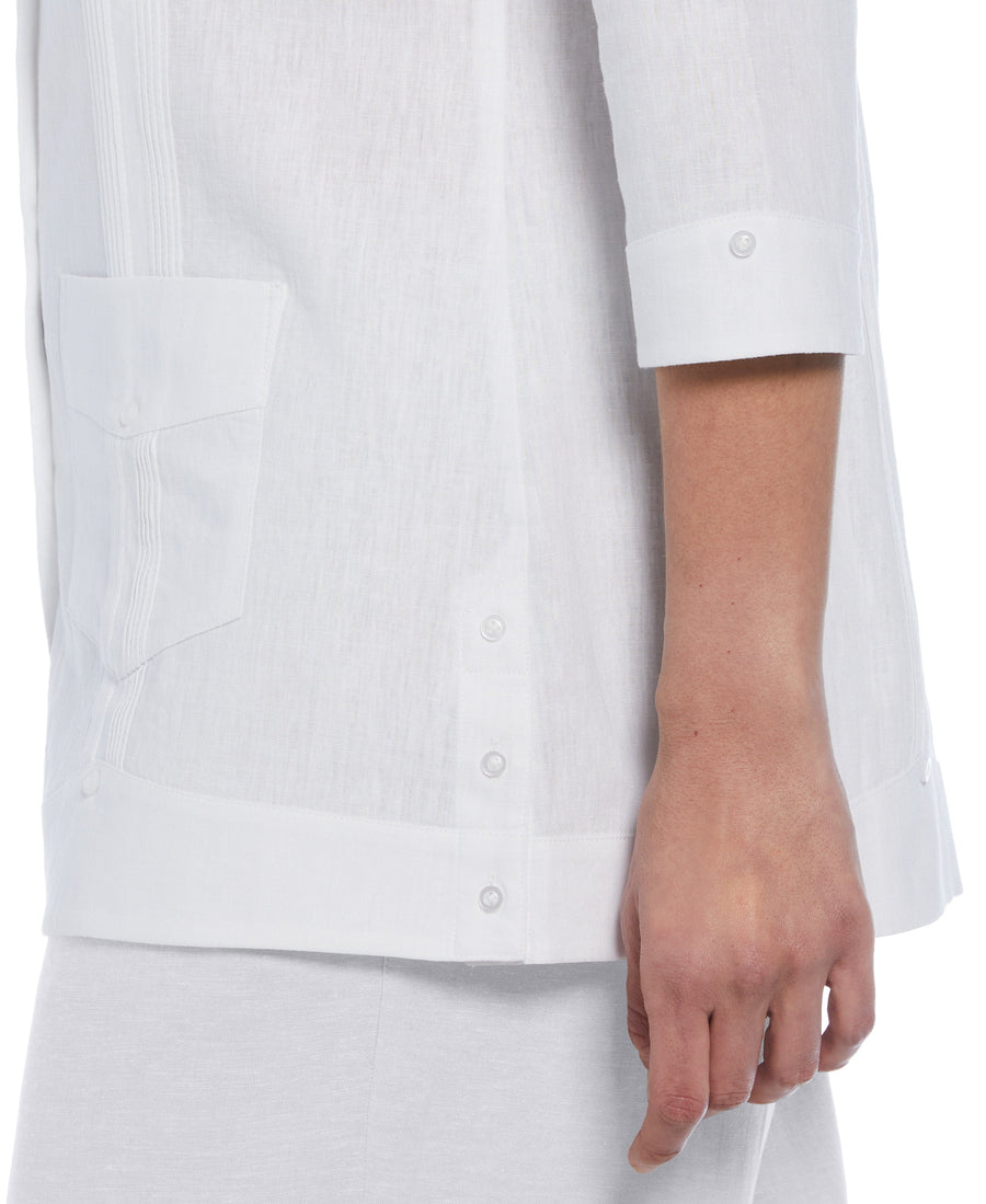 Tienda BKOOL presenta Cubavera Guayabera Brilliant White, adopte el clásico estilo cubano con esta fresca y cómoda guayabera blanca de Cubavera, esta blusa de manga larga para mujer cuenta con cuatro bolsillos y el distintivo diseño de las guayaberas, ofreciendo un estilo chic de inspiración latina, el tejido, una mezcla de lino y viscosa, cae con fluidez y comodidad, mientras que las mangas largas brindan una agradable protección contra el sol.