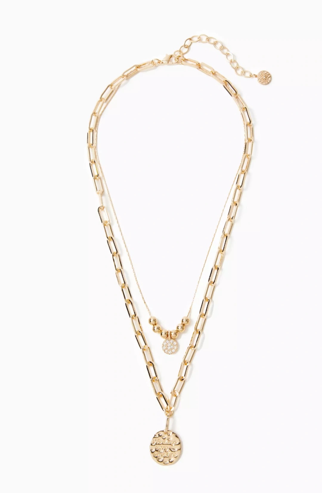 Tienda BKOOL presenta Lilly Pulitzer Island Hopping, las cadenas en capas adornadas con pavé y dijes de monedas martilladas añaden detalles de lujo.