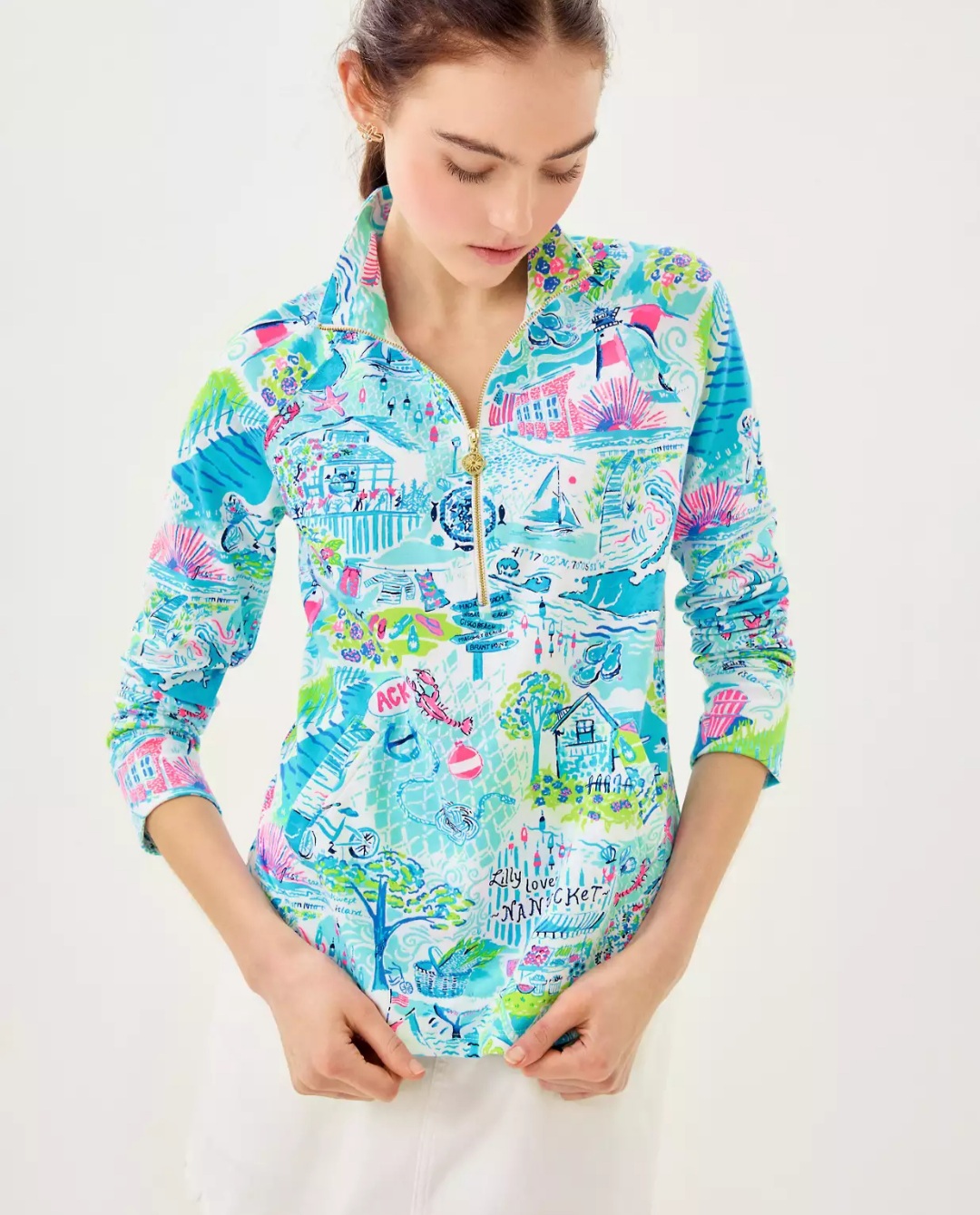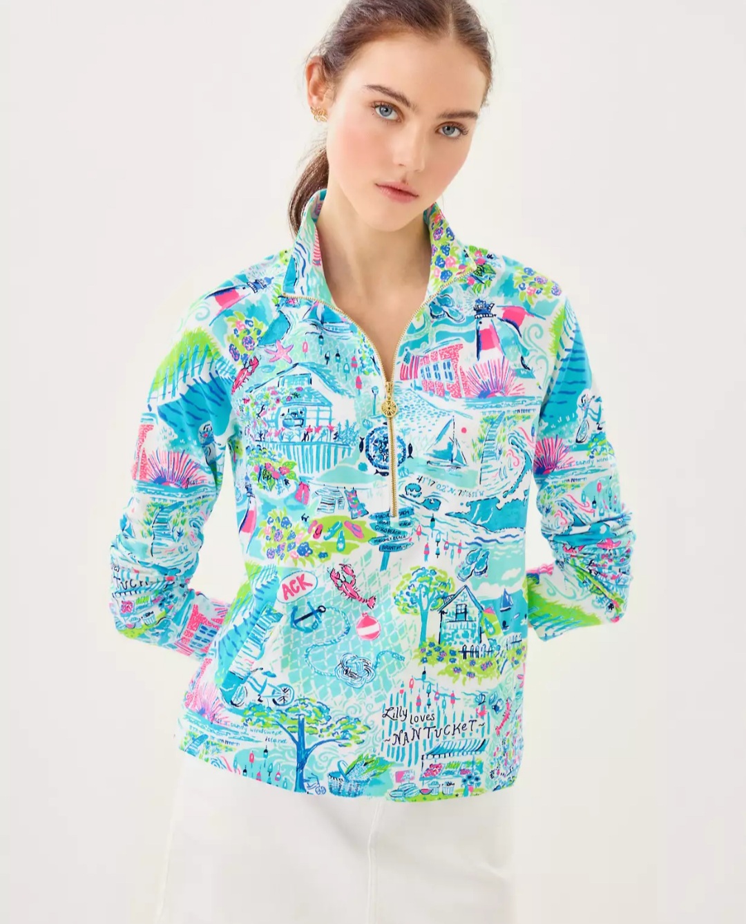 Tienda BKOOL presenta Lilly Pulitzer Loves Nantucket, la sudadera Skipper es una prenda de manga larga con media cremallera que se ha convertido en una de nuestras prendas deportivas imprescindibles, sin importar la temporada, es una sudadera con media cremallera y prtección UPF5P+ mangas largas y bolsillos ribeteados, esta hecha en 96% algodón orgánico y 4% elastano.
