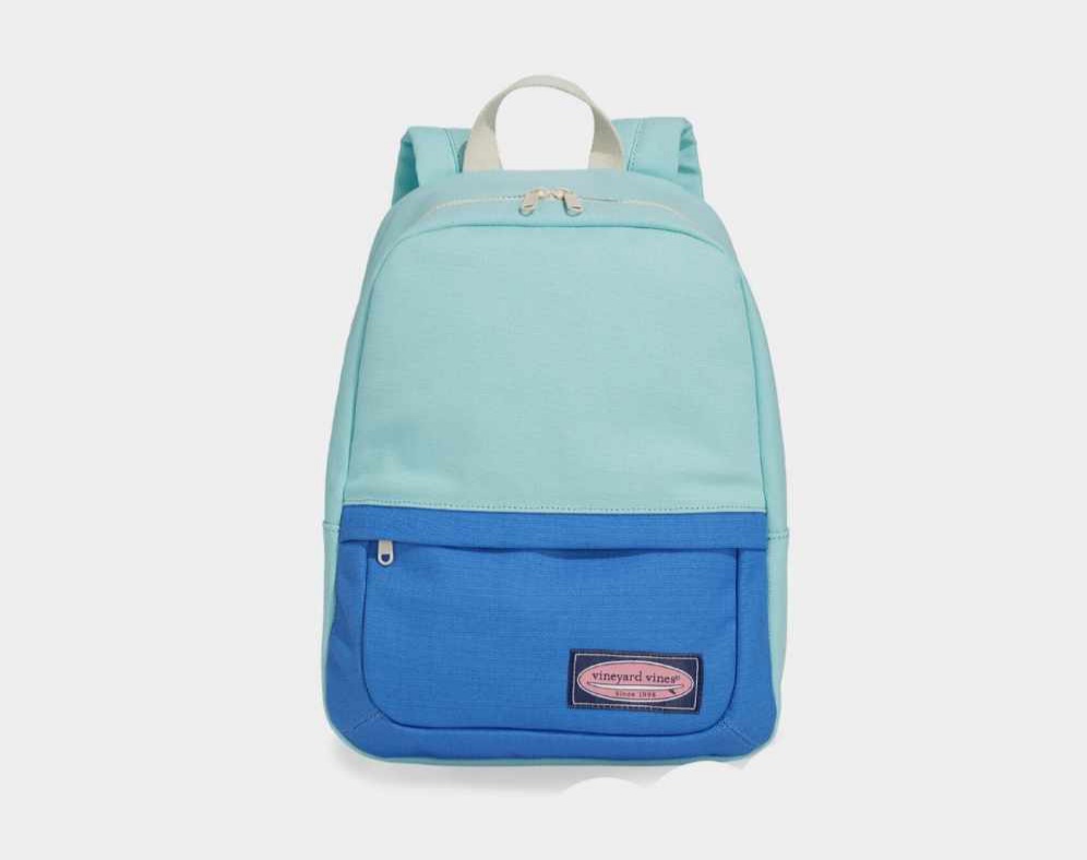 Tienda BKOOL presenta Vineyard Vines mochila en color Aqua Sky el complemento perfecto para su uniforme escolar, esta mochila la mejor en su clase es genial, colorida y super funcional con interior revestido que se puede limpiar, el tamaño justo para libros y carpetas, correas de mochila ajustables y compartimento frontal con cremallera, tiene las siguientes dimensiones 12″ de largo, 5.5″ ancho y 16.5″ altura.