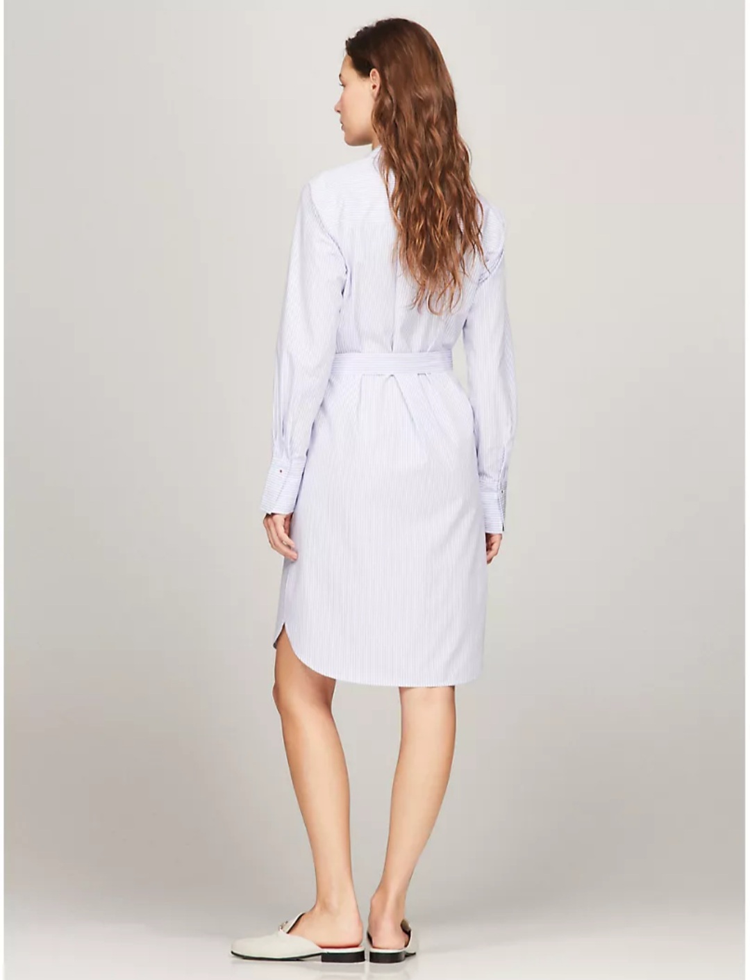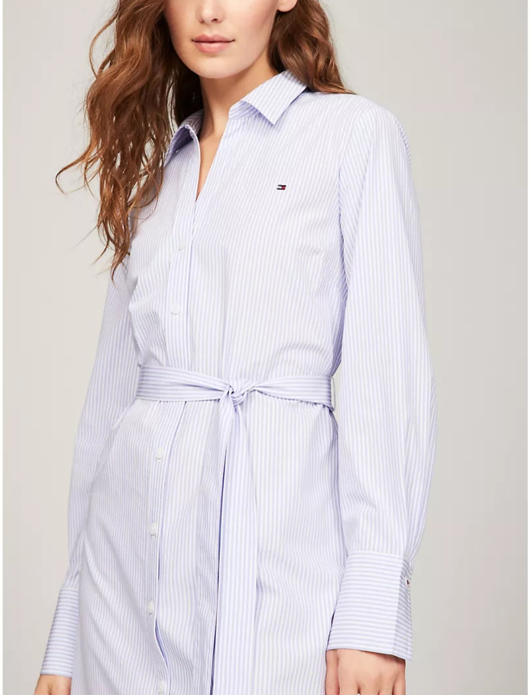 Tienda BKOOL presenta Tommy Hilfiger Belted Stripe Shirtdress, vestido en color suave confeccionado con suave popelín de algodón con cinturón desmontable y cierre de botón, este vestido camisero es versátil, ligero y cómodo esta hecho en 100% algodón orgánico.